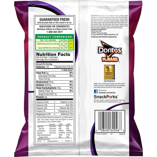 Doritos Reduced Fat Flamas Tortilla Chips 1oz bag (Case Pack of 72)