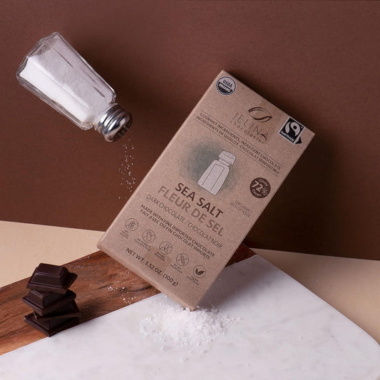 Jelina Chocolatier | 8 Pack 72% Dark Chocolate Bar with Sea Salt | Organic Cocoa, Fair Trade Chocolate | Non-GMO, Vegan Chocolates - 3.52oz Each