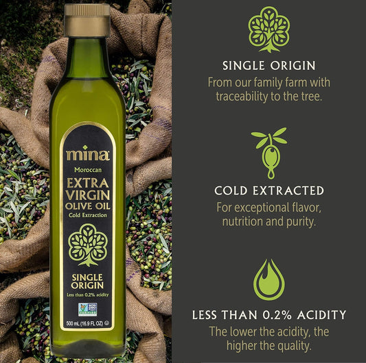 Mina Extra Virgin Olive Oil Single Origin Gourmet Moroccan Olive Oil Cold 16.9 os