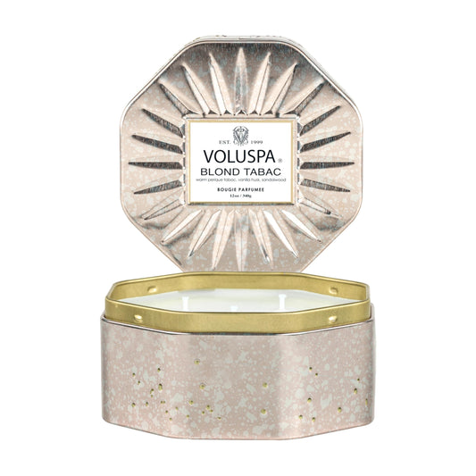 Voluspa 3 Wick Octagon Tin Candle - Blond Tabac 12oz Mens Home Scent