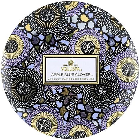 Voluspa Apple Blue Clover Candle | 3 Wick Tin | 12 Oz. | Coconut Wax for Clean Burning