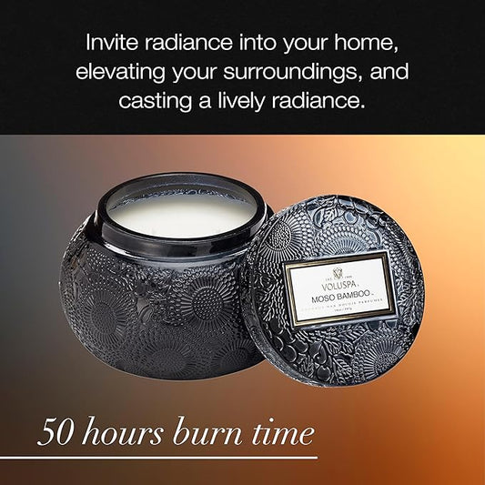 Voluspa Moso Bamboo, Glass Chawan Bowl Candle, 14 ounce, 50 Hour Burn Time, Coconut Wax for Clean Burning, Handcrafted in the USA