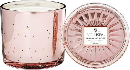 Voluspa Sparkling Rose, Grande Maison 3 Wick Glass Candle, 36 Ounce, 100 Hour Burn Time, Coconut Wax for Clean Burning, Handcrafted in The USA