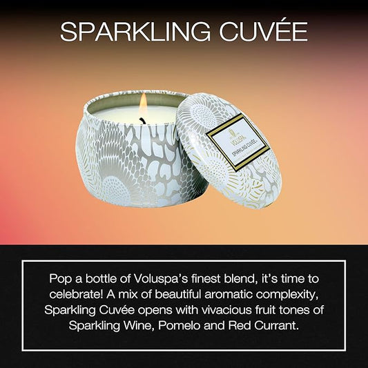 Voluspa Sparkling Cuvee, Mini Tin Candle, 4 oz, 25 Hour Burn Time, Coconut Wax for Clean Burning, Handcrafted in the USA