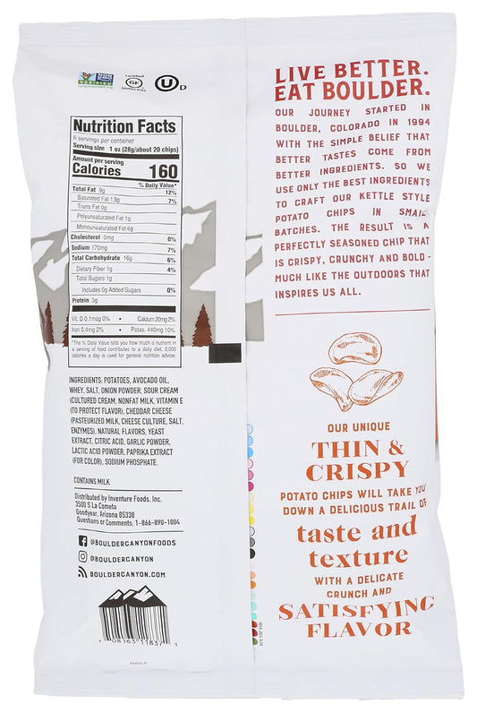Boulder Canyon Thin & Crispy Cheddar Sour Cream Potato Chips | 6 oz Bag (Case Pack of 12)