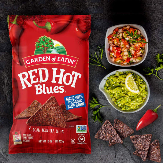 Garden of Eatin' Red Hot Organic Blue Corn Tortilla Chips | 16 Ounce Bag (Pack of 12)