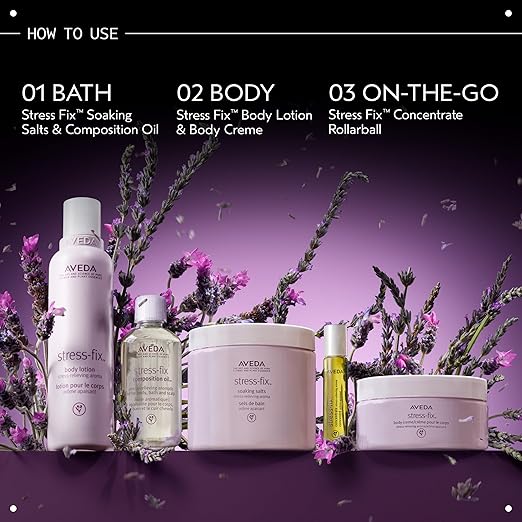 Aveda Stress-Fix Soaking Salts offer a calming bath experience infused with the relaxing aromas of lavender, lavandin, and clary sage. This 16-ounce blend helps soothe tension and promote relaxation, supporting stress relief through aromatherapy and gentle skin nourishment. Ideal for winding down after a long day, these salts enhance your bath ritual with natural botanical extracts trusted for their calming properties.