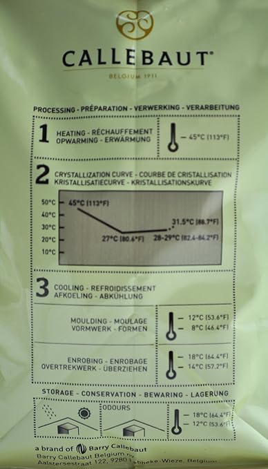 Callebaut Recipe No. W2 is a premium Belgian white chocolate blend featuring 28% cacao butter and 22% milk content. Weighing 5.51 pounds, this chocolate offers a smooth, creamy texture ideal for professional confectionery and baking applications. Its balanced composition ensures excellent melting properties and a rich, velvety flavor profile, making it perfect for ganaches, coatings, and delicate desserts where refined taste and quality are essential.