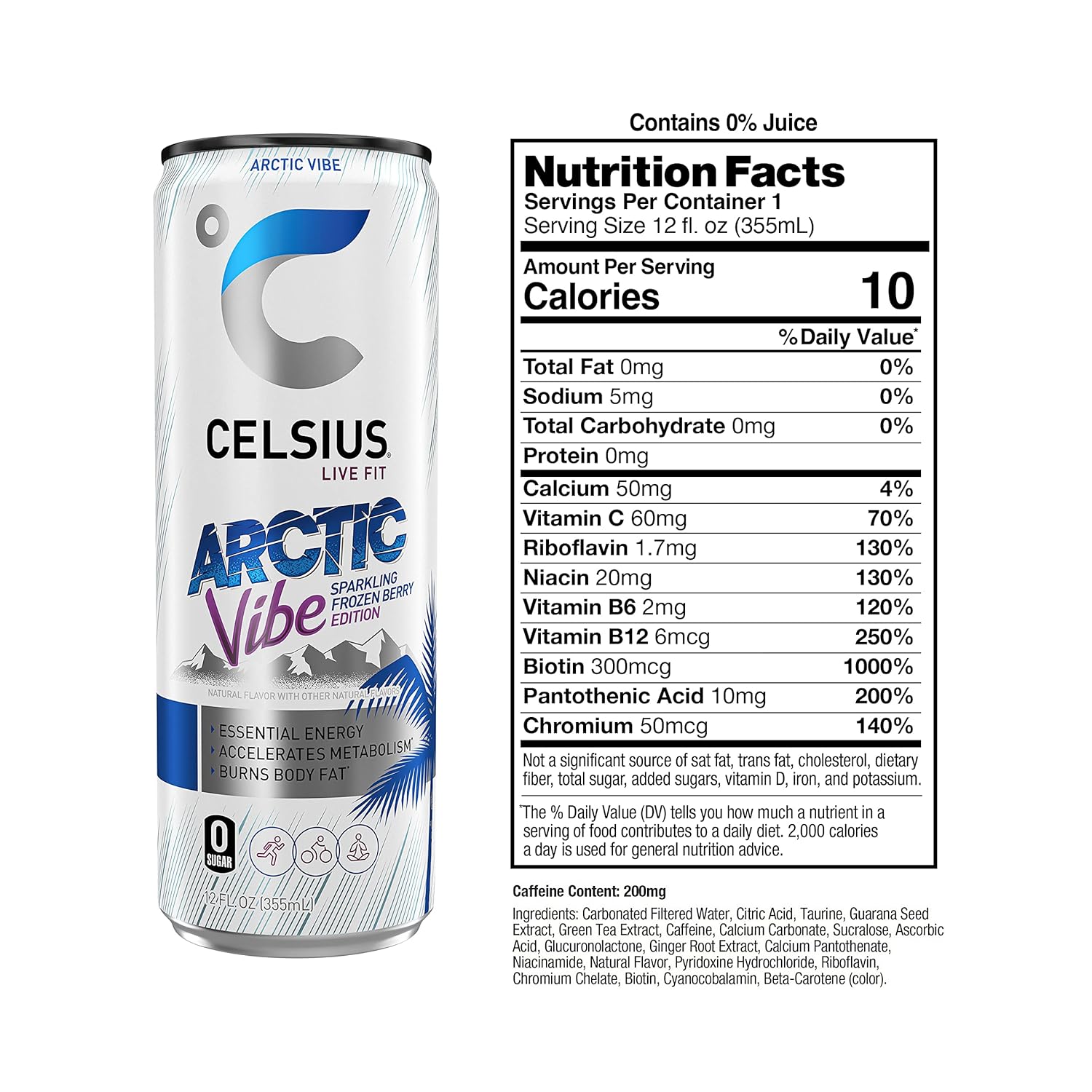 Celcius Essential Arctic Vibe Energy Drink comes in a convenient case pack of 24 twelve-ounce bottles, designed to provide a consistent boost of energy and focus. Formulated with key ingredients that support enhanced metabolism and endurance, this drink is ideal for active lifestyles and those seeking a clean, sustained energy lift without artificial preservatives. Its crisp, refreshing Arctic Vibe flavor offers a balanced taste while fueling your day efficiently and effectively. Perfect for athletes, busy professionals, and anyone needing reliable energy support.