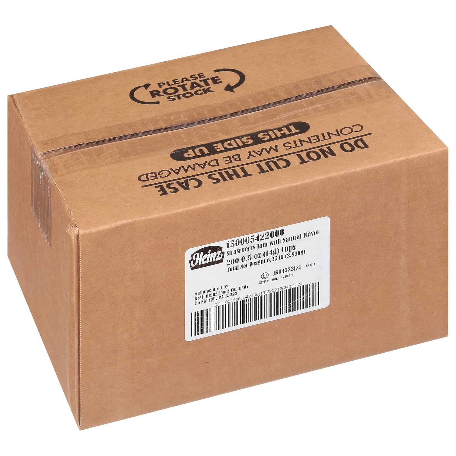 Heinz Strawberry Jam delivers authentic fruit flavor in convenient single-serve portions. Each .5oz cup contains premium strawberry jam crafted with quality ingredients, perfect for breakfast spreads, baking, or on-the-go enjoyment. The individual packaging ensures freshness and eliminates waste, making these cups ideal for restaurants, cafes, hotels, and retail settings. Heinz's trusted heritage guarantees consistent taste and quality in every serving.
