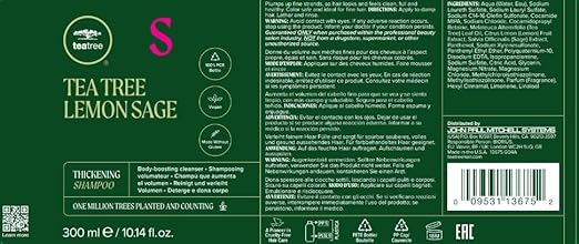 Paul Mitchell Tea Tree Lemon Sage Shampoo and Conditioner, available individually or as a duo pack in 10.14 oz bottles, combine invigorating tea tree oil with refreshing lemon and sage extracts. This expert-formulated duo deeply cleanses and nourishes hair, promoting a healthy scalp while leaving hair feeling revitalized and refreshed. Ideal for those seeking a balanced cleanse with natural botanical benefits.