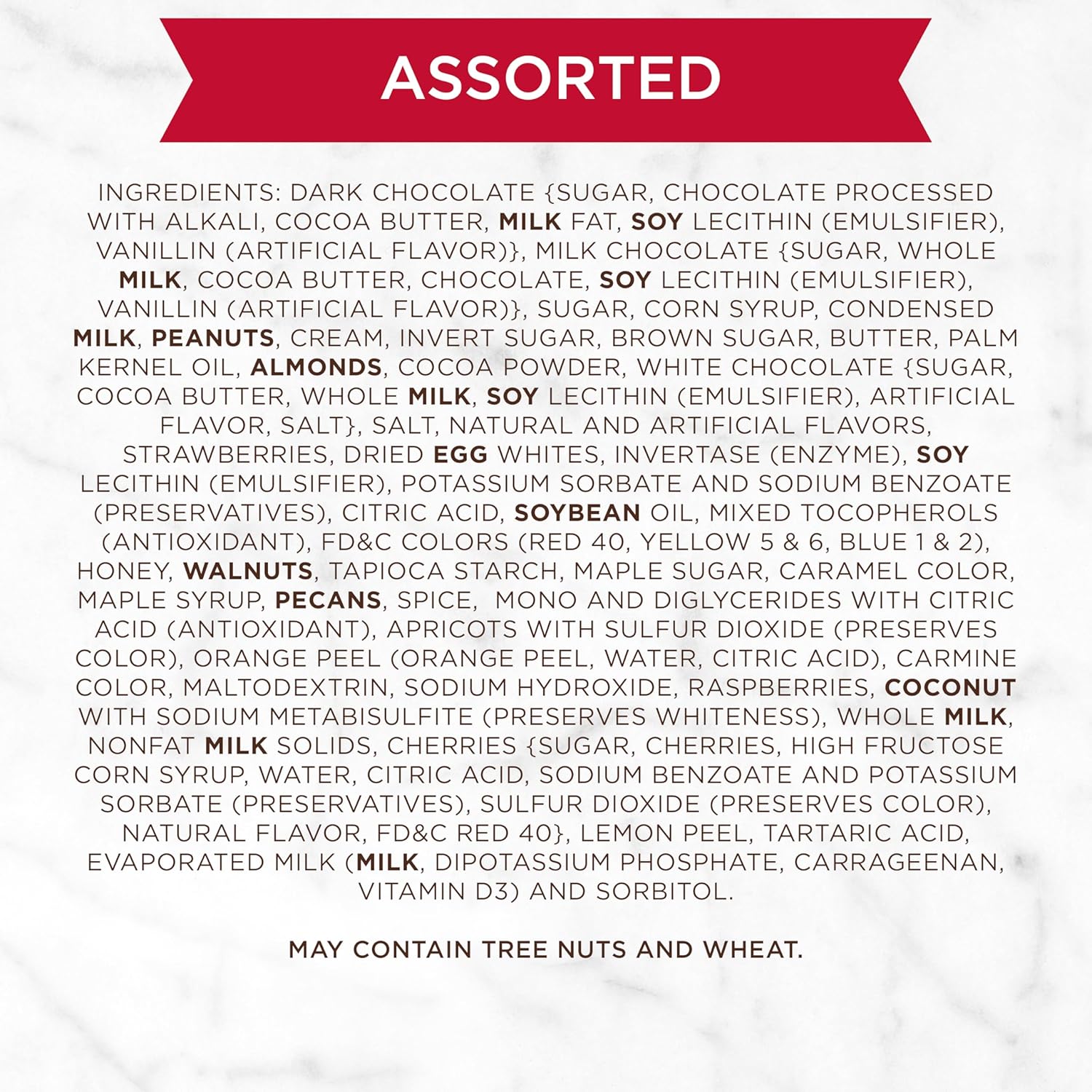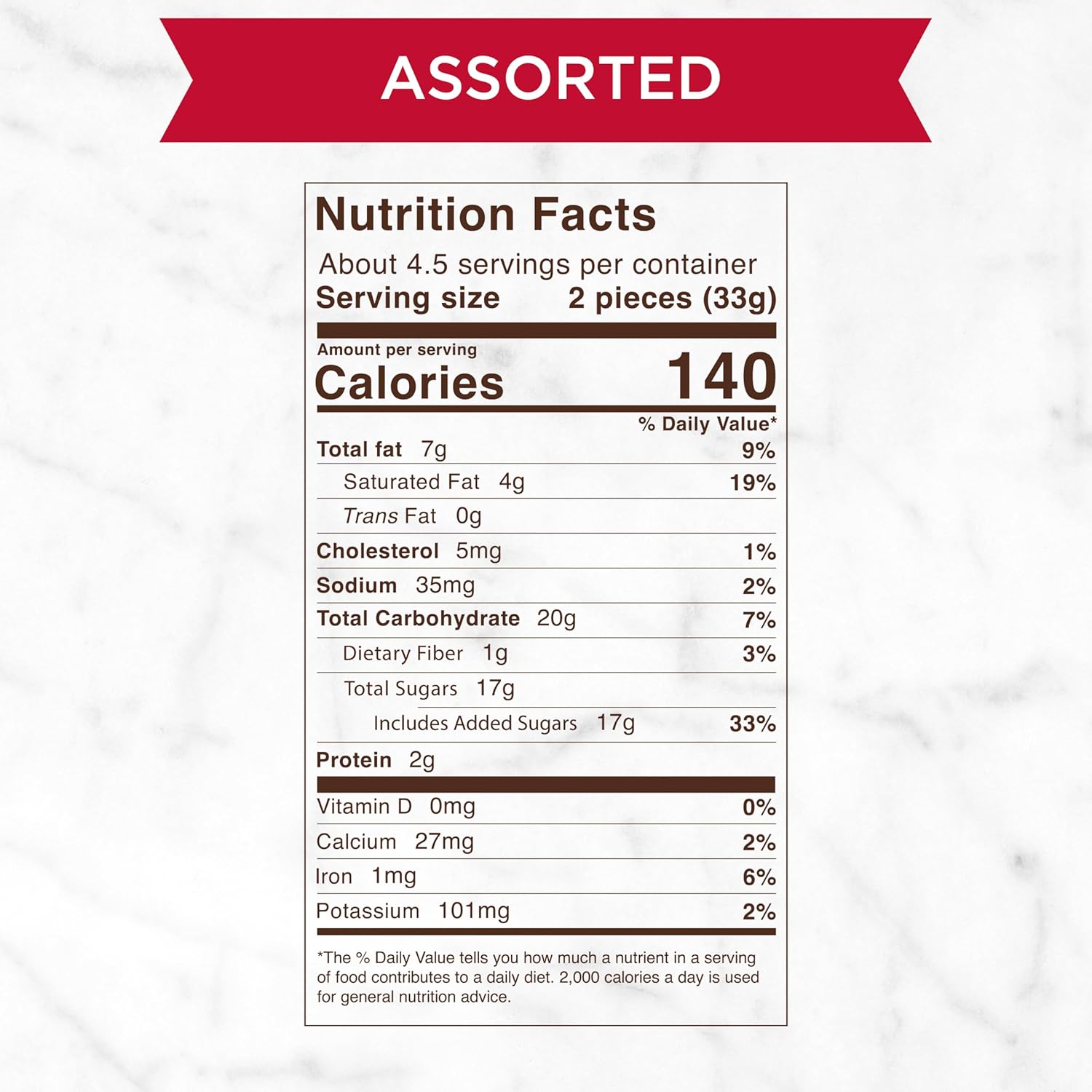 - 9 piece assortment of 7 delicious milk chocolate & dark chocolate treats. Product sold by weight, not volume.